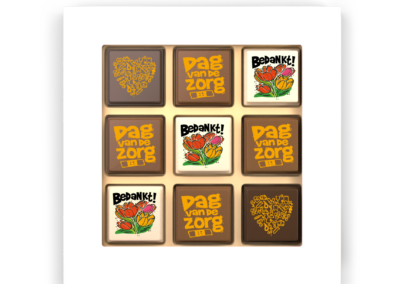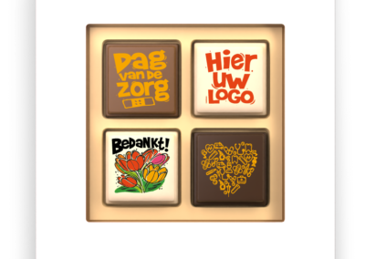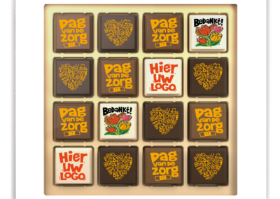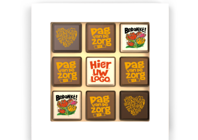 | Minimum order | Logo pralines: 1.000stuks – thema pralines: 1 volledige buitenverpakking |